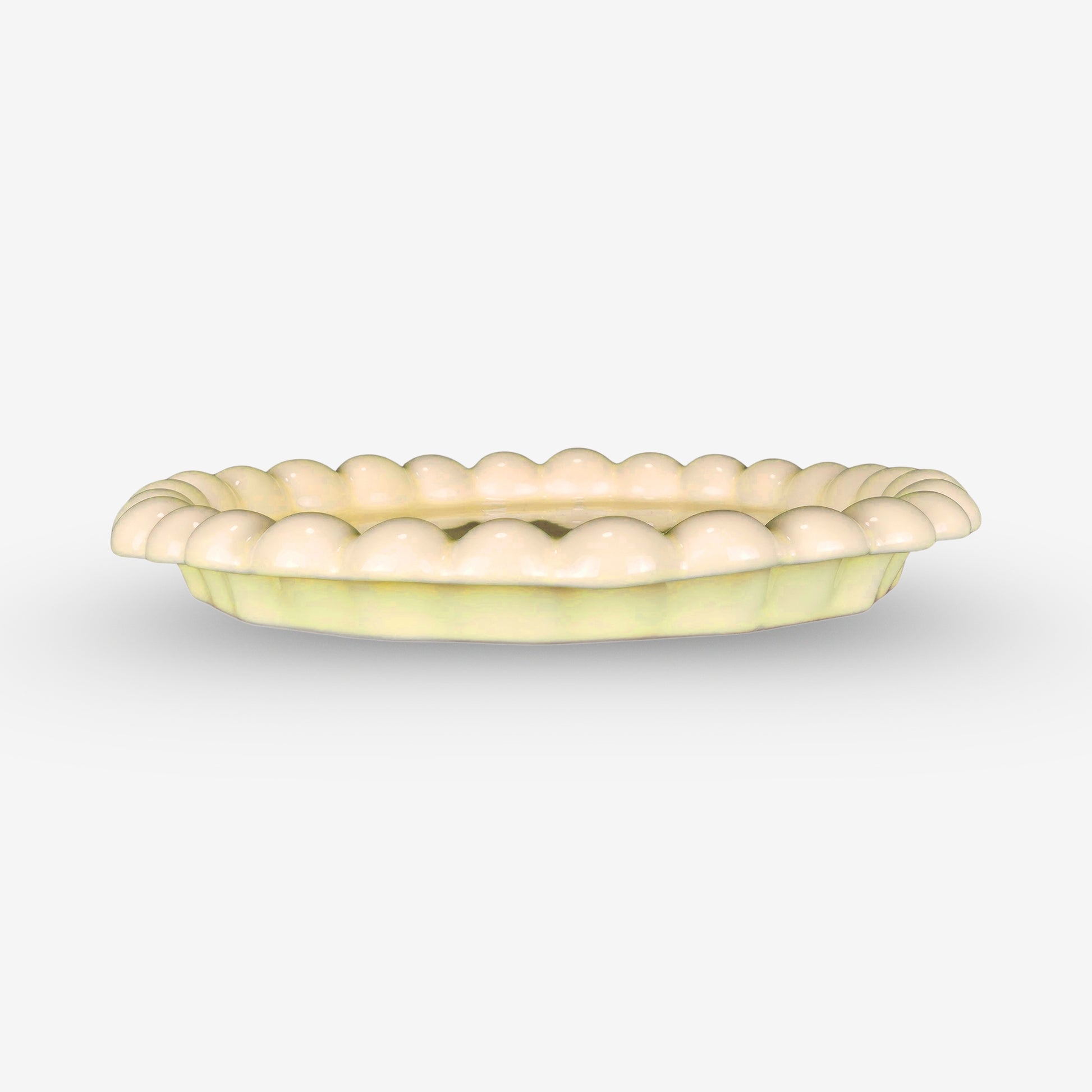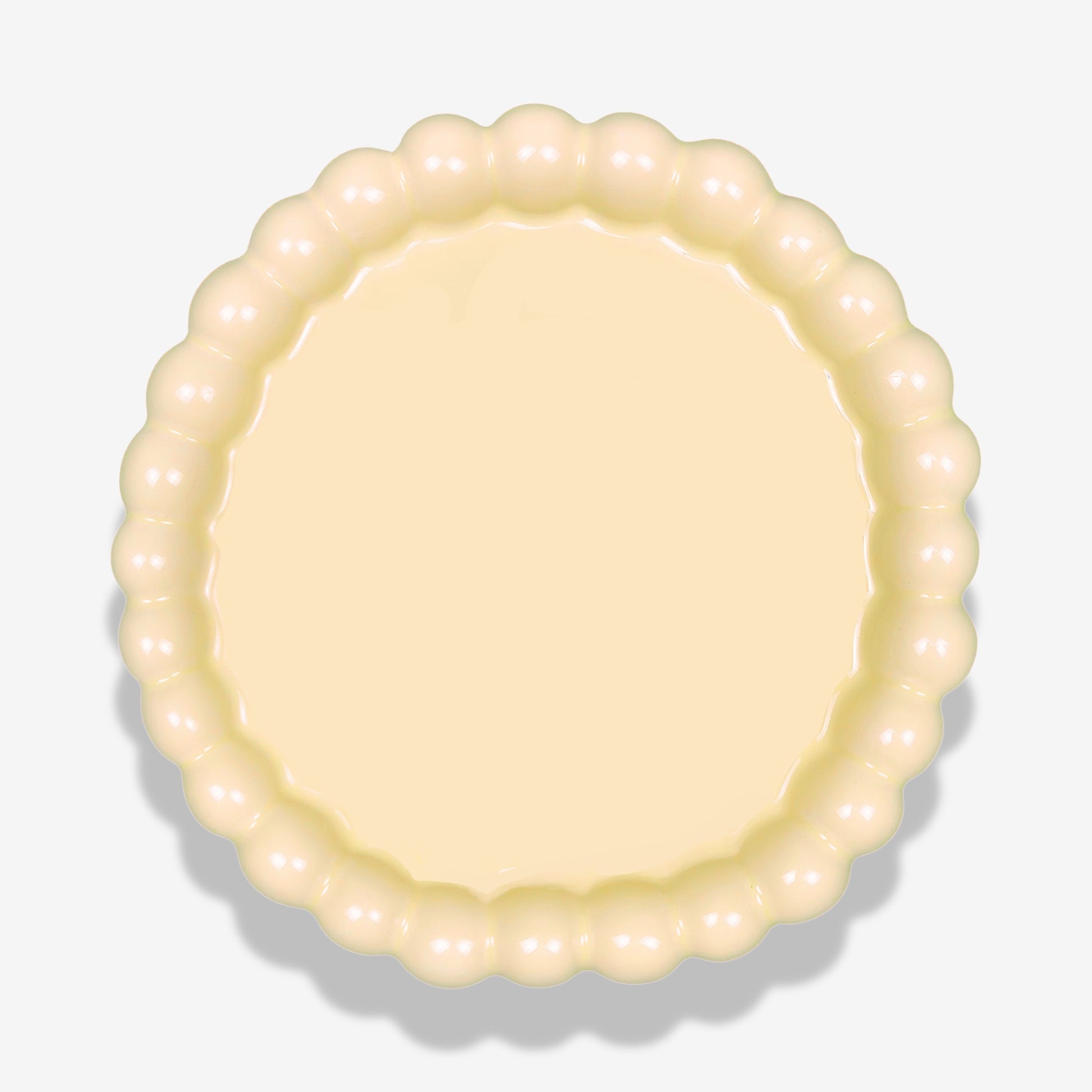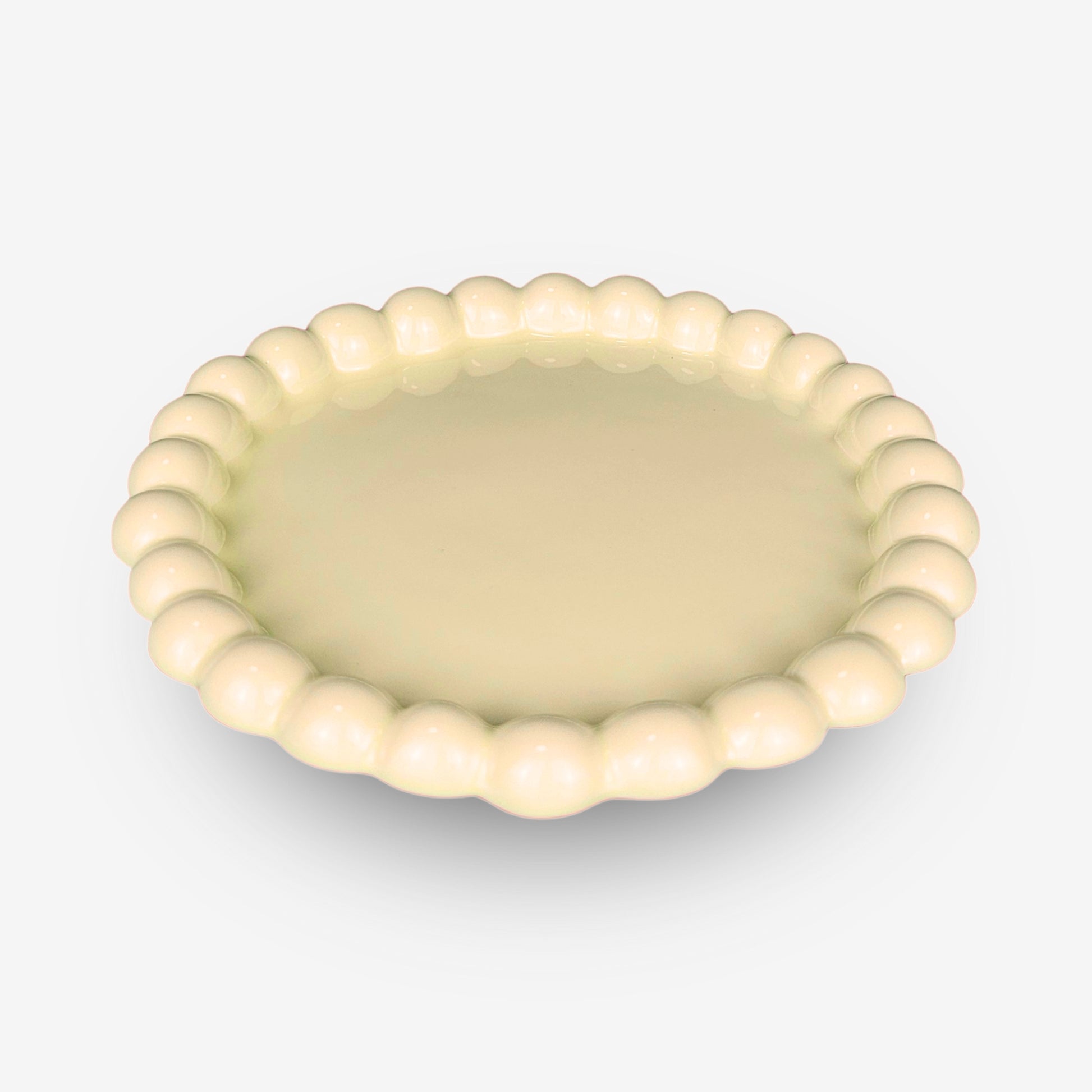 Radiant and indulgent, the Yakgwa Plate embodies the confident charm of the queencard (퀸카)—a symbol of the top woman. Inspired by yakgwa, the classic golden honey cookie, its custard glaze glows deliciously with warmth and depth, while the pearl-like rim curves in a continuous rhythm of luxury. Each undulation catches light like a strand of jewelry, giving the plate a sculptural allure that’s both playful and poised. Fired at ultra-high temperature and polished to a mirror-smooth sheen, it is as resilient as it is radiant. Perfect for serving desserts, fruit, or salt bread, the Yakgwa Plate makes every meal twice as sweet.